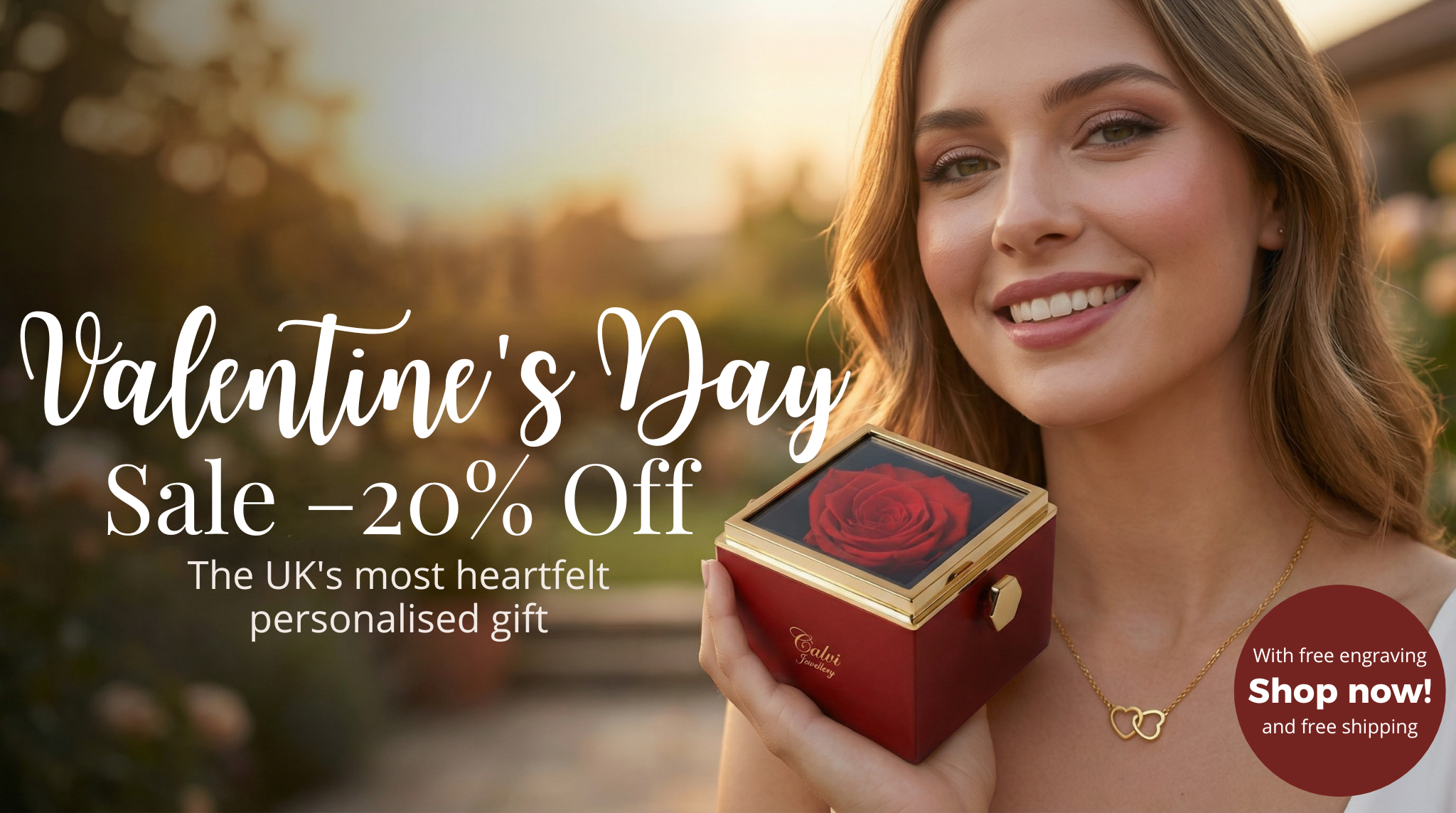 Our beautiful 18k yellow gold–finished Double Heart Necklace is individually engraved for each customer. The included gift box with a real rose makes it the perfect and truly unique gift for your loved ones. 🖤